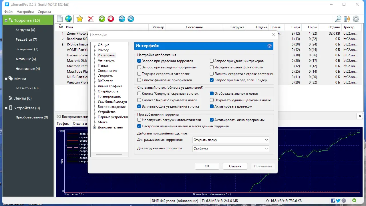 Одна из самых популярных и быстрых программ для скачивания торрентов, отличающаяся низким потреблением ресурсов и простым интерфейсом.