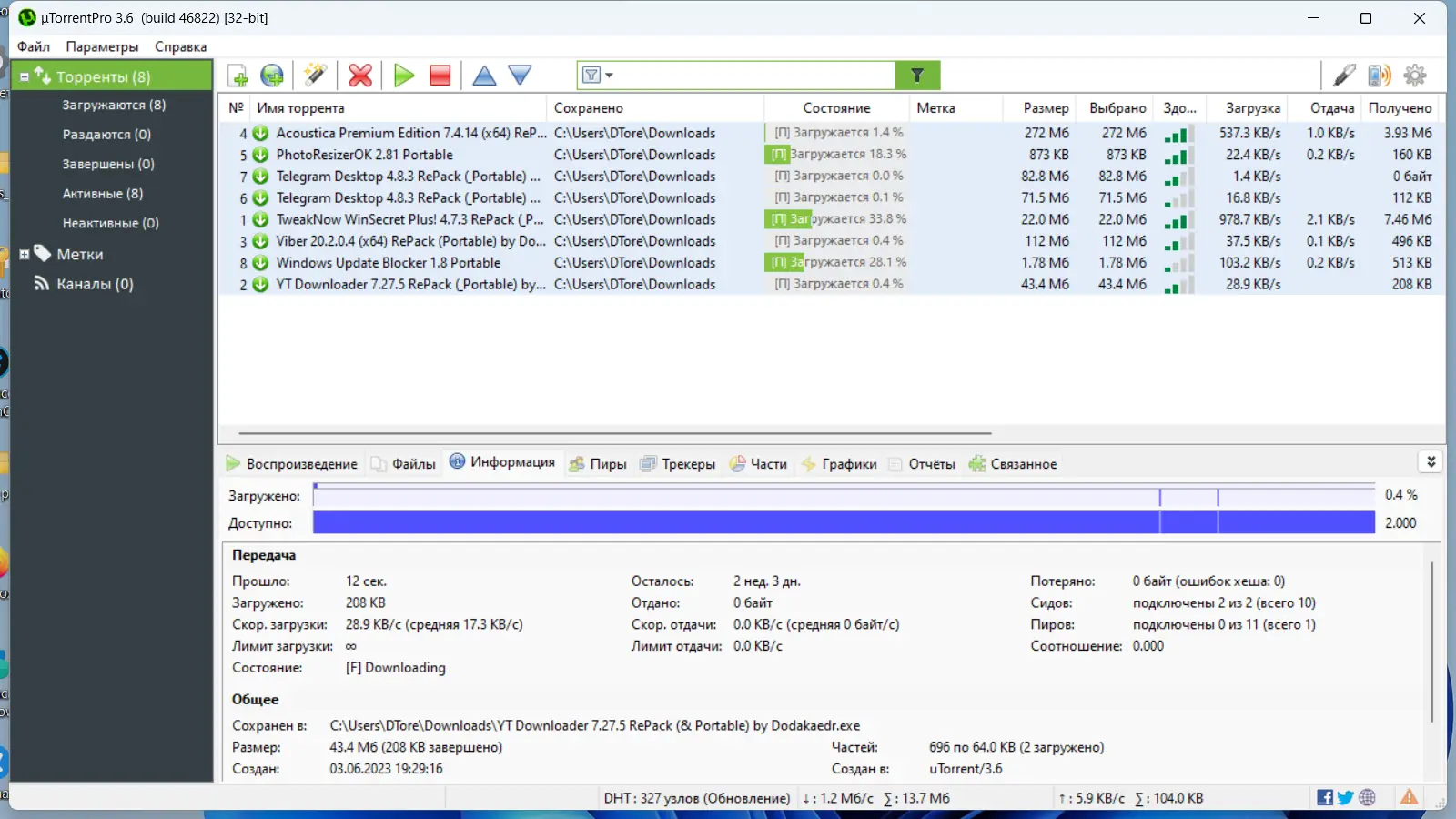 µTorrent — одна из самых популярных и функциональных программ для работы с сетью BitTorrent. Она сочетает минимальный размер и богатый набор функций, что делает её незаменимой для пользователей, ищущих надежное решение для загрузки и раздачи файлов. Поддержка различных протоколов, работа независимо от трекера, возможность параллельных загрузок и настройка полосы пропускания позволяют максимально эффективно использовать интернет-канал. Программа совместима с Windows 7, 8/8.1, 10, 11 для x32 и x64 Bit, предлагая стабильную работу и низкое потребление ресурсов.
