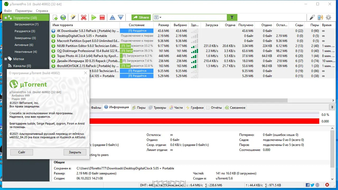 - Поддержка UPnP, NAT-PMP, расширений протокола и шифрования.