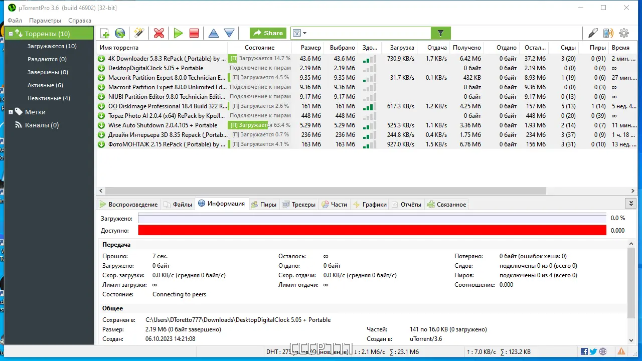 µTorrent — это одно из наиболее популярных решений для работы с торрентами, которое сочетает в себе высокую функциональность при небольшом размере. Программа поддерживает работу независимо от трекера, позволяет загружать сразу несколько файлов, имеет настраиваемую полосу пропускания и возможность быстрого восстановления прерванных загрузок. Благодаря поддержке расширенных настроек, функций работы с RSS-ленты и взаимодействия с другими клиентами без необходимости основного трекера, пользователь получает полный контроль над процессом загрузки. Программа подходит для всех версий Windows — от Windows 7 до Windows 11, а также может использоваться в Linux при помощи Wine.