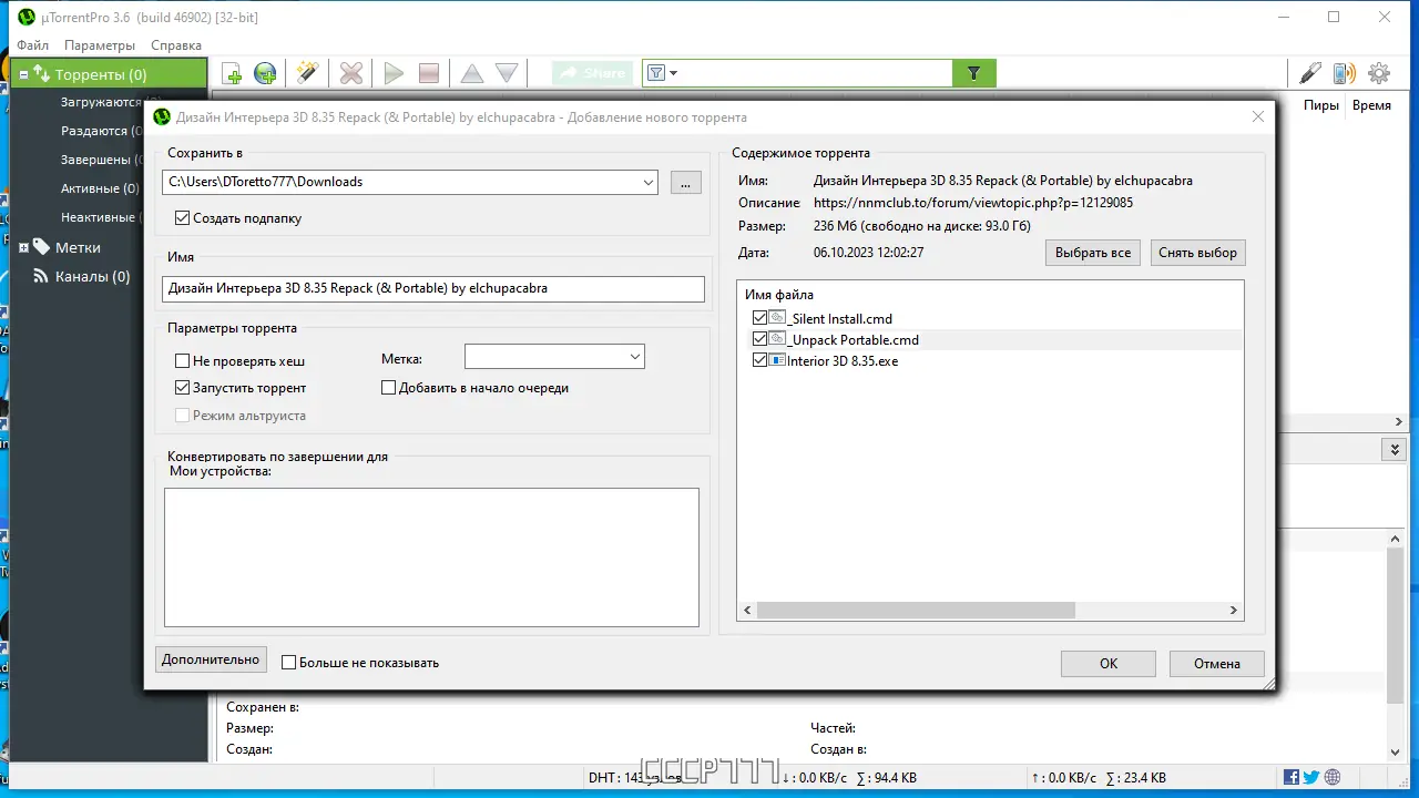 - Взаимодействие с другими клиентами через DHT без необходимости трекеров.
