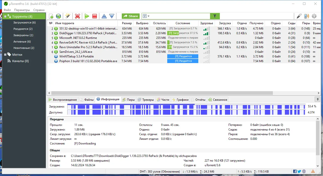 uTorrent — это современный торрент-клиент, который сочетает высокую функциональность с малым размером файла. Он работает на всех версиях Windows, начиная с Windows 7 и новее, а также поддерживается в Linux через Wine. Среди преимуществ — возможность загрузки нескольких файлов одновременно, настройка полосы пропускания, быстрый механизм восстановления прерванных загрузок и независимая работа без необходимости использования трекера благодаря технологии DHT. Программа отличается низким потреблением оперативной памяти и наличием удобного веб-интерфейса для удаленного управления. Также доступна портативная версия, не требующая установки, что делает программное обеспечение универсальным и удобным для использования в любых условиях.