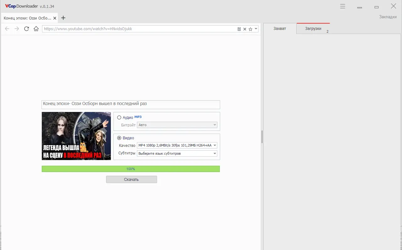 - Загрузка видео и аудио с различных веб-сайтов в разных качествах