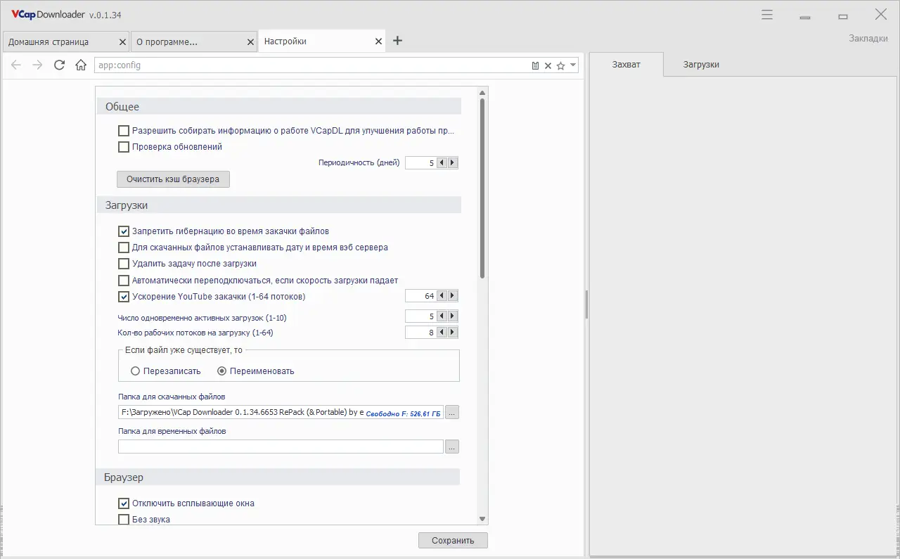 VCap Downloader (VCapDL) – это профессиональное и удобное решение для захвата видео и аудио с различных веб-ресурсов. Благодаря интерфейсу, напоминающему привычный браузер, пользователь легко ориентируется в функционале и быстро осваивает работу с программой. Для скачивания достаточно скопировать URL желаемого видео или аудио в буфер обмена и вставить его в программу – VCap Downloader автоматически предложит варианты качества и сохранит файл в нужном формате. Встроенные инструменты позволяют извлекать аудиодорожки, преобразовывать их в формат MP3, а также выполнять базовые монтажные операции, такие как обрезка, кадрирование или изменение размера видео.
