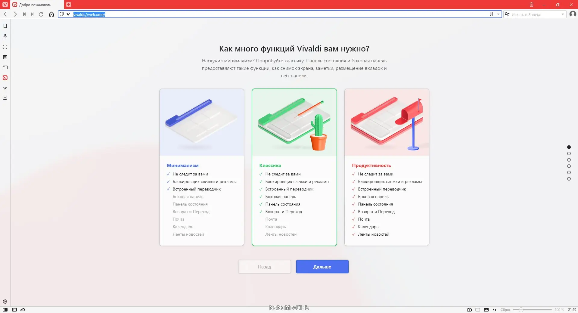 Данный браузер основан на открытом движке Chromium и движке Blink, что обеспечивает высокую производительность и совместимость с современными веб-технологиями. В Vivaldi реализованы уникальные функции, такие как боковая панель, режим отображения картинок на страницах, заметки, визуальные вкладки и корзина закрытых вкладок. Многие из этих возможностей были переняты из предыдущей версии Opera 12, что позволяет максимально эффективно организовать работу с браузером и повысить уровень комфорта при серфинге.