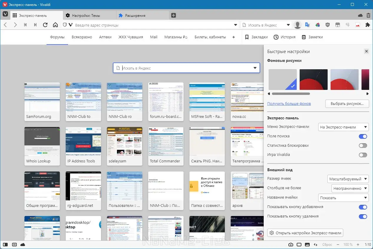 - Экспресс-панель для быстрого доступа к любимым сайтам и возможностью группировать закладки по тематикам.