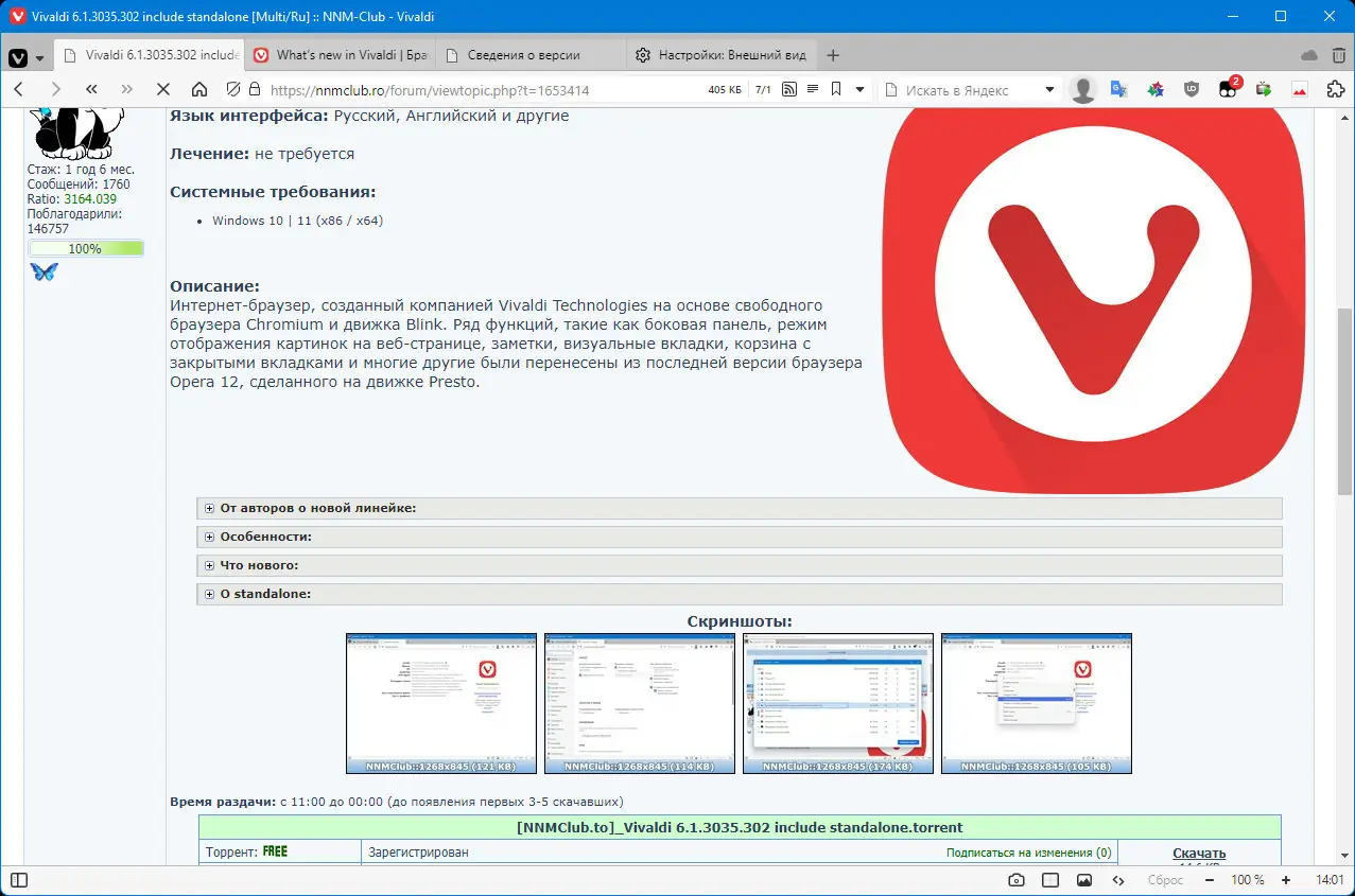 Бесплатный интернет-браузер, созданный компанией Vivaldi Technologies, основанный на движке Chromium. Предназначен для пользователей, которые ценят гибкость настройки и широкие возможности для повышения эффективности интернет-серфинга.