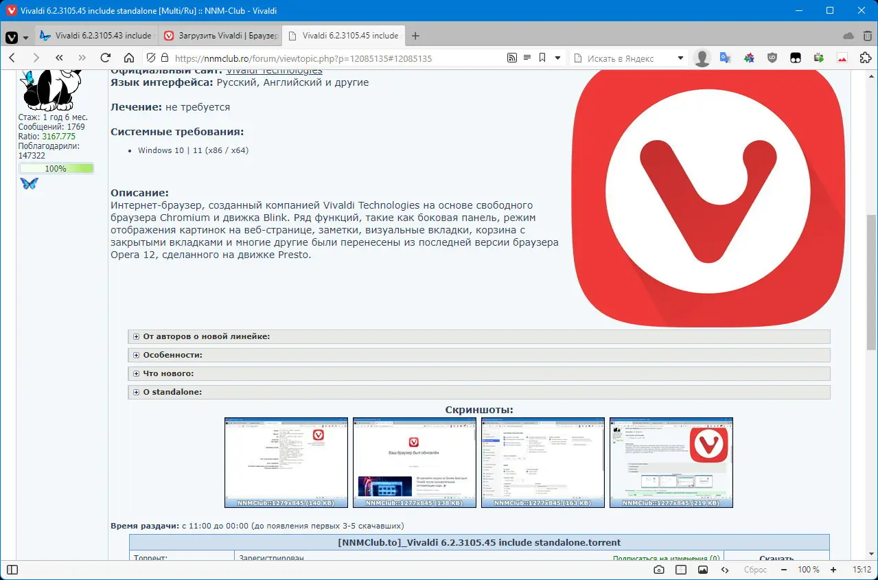 Также доступна автономная версия (standalone), которую можно выбрать при установке, что обеспечивает дополнительную гибкость при использовании. В настоящее время браузер можно скачать бесплатно, в том числе через торрент, для различных систем: Windows 7, 8/8.1, 10, 11. x32/x64 Bit. Он подходит как для домашнего, так и для профессионального использования, оставаясь удобным инструментом для поиска информации и работы с множеством вкладок одновременно.
