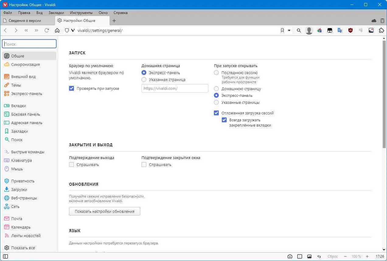 Это современный интернет-браузер, разработанный компанией Vivaldi Technologies, сочетающий в себе функциональность и индивидуальную настройку. Благодаря использованию открытых веб-технологий и мощного Chromum-движка, он обеспечивает стабильность и безопасность при серфинге. В браузере реализованы уникальные функции, такие как боковая панель, режим отображения картинок на страницах, заметки, визуальные вкладки и корзина с закрытыми вкладками. Многие из этих возможностей были переняты из предыдущих версий Opera, что делает опыт использования особенно гибким и удобным.