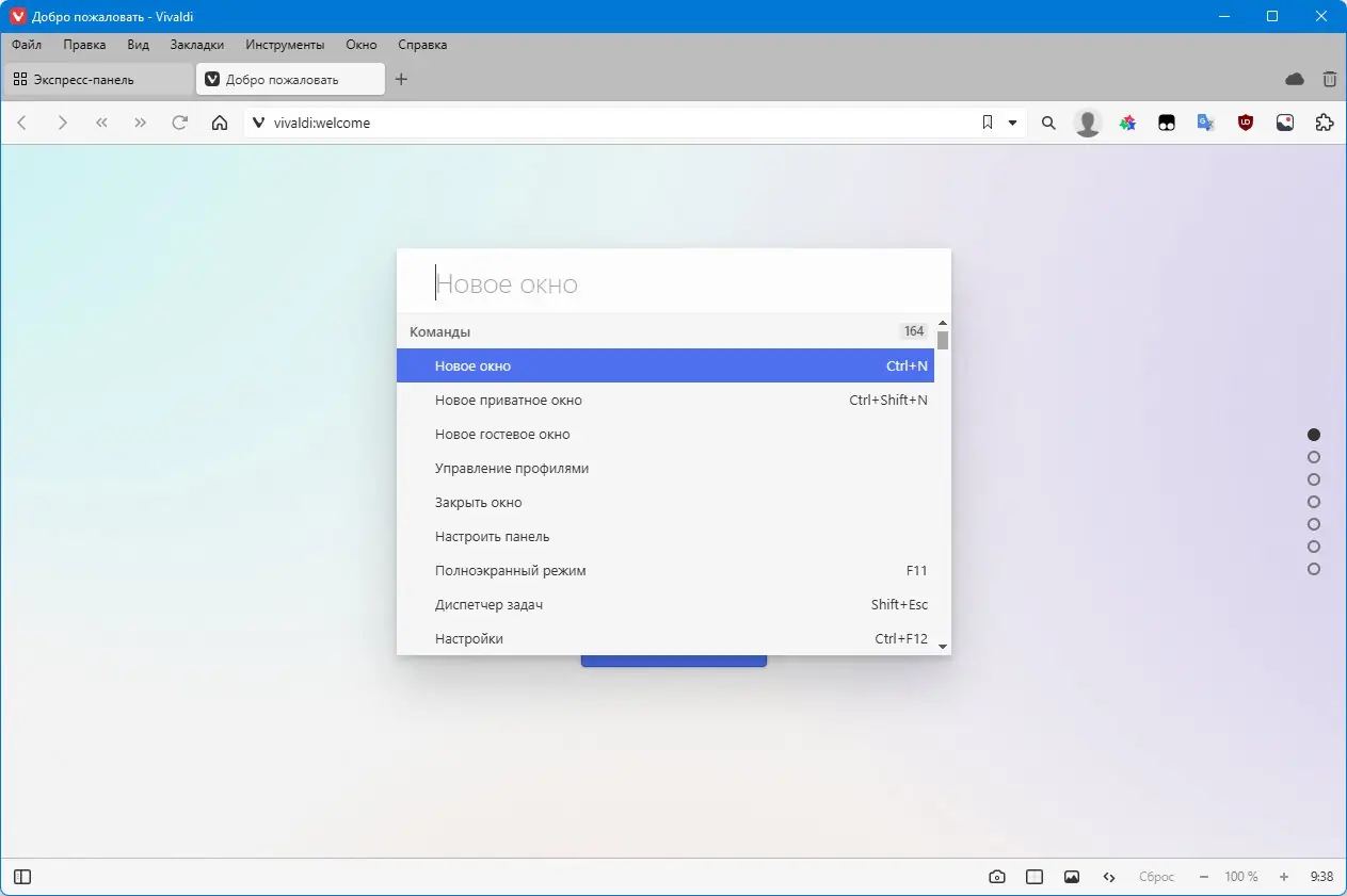 - Быстрые команды для мгновенного доступа к настройкам, историям и закладкам с помощью комбинаций клавиш.