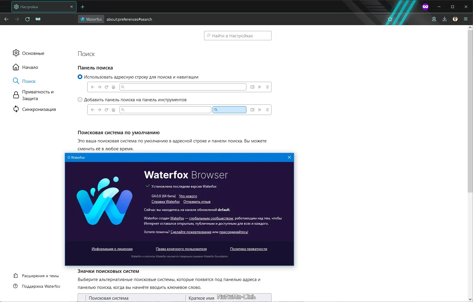 Waterfox — это современный 64-разрядный браузер, основанный на исходном коде Mozilla Firefox, специально оптимизированный для Windows. Обладает высокими скоростными характеристиками и широкими возможностями настройки, предоставляя пользователю комфортное и безопасное серфинг-окружение.