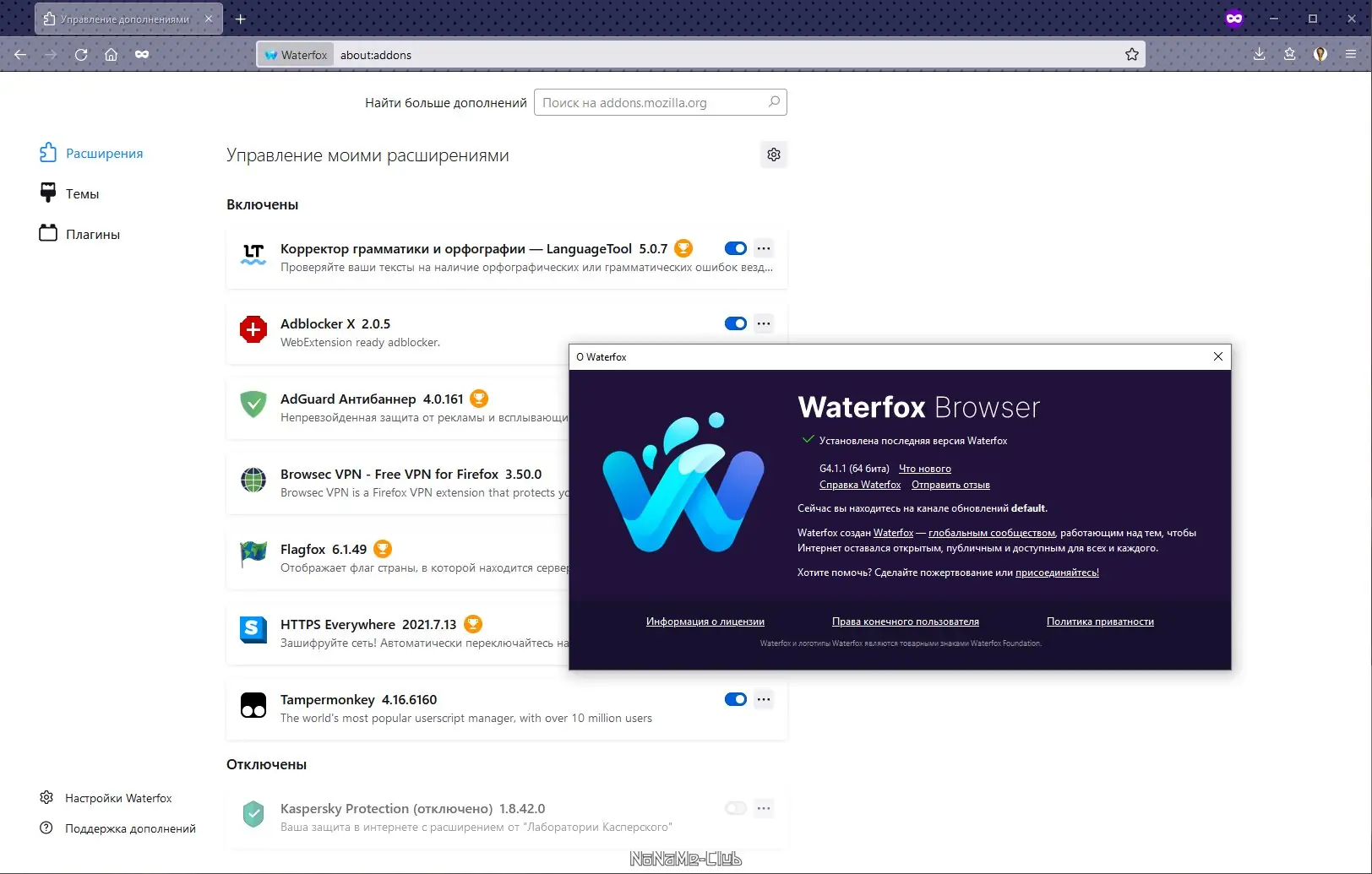 Waterfox — это браузер, созданный на основе исходного кода Mozilla Firefox, с упором на оптимизацию для 64-разрядных систем семейства Windows. Благодаря тому, что сборка специально скомпилирована для архитектуры x64, он обеспечивает более быструю работу и повышение скорости загрузки страниц. Разработчики сделали упор на использование всех преимуществ современной организации памяти, что позволяет браузеру быть заметно быстрее, чем исходный Firefox, особенно при работе с ресурсоемкими сайтами или медленными соединениями. Waterfox обладает всеми стандартными функциями Firefox, а также поддерживает множество расширений и предоставляет инструменты для веб-разработчиков. В дополнение, возможность русификации позволяет ему удобно использовать русскоязычным пользователям.