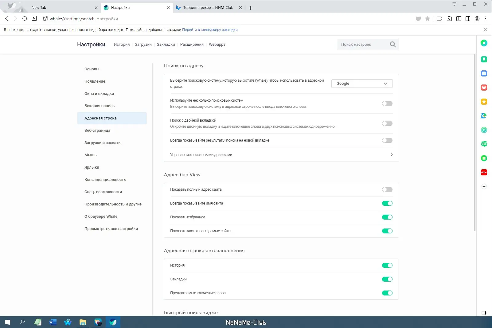 - Отключаемая боковая панель и режим разделенного окна Whale Space