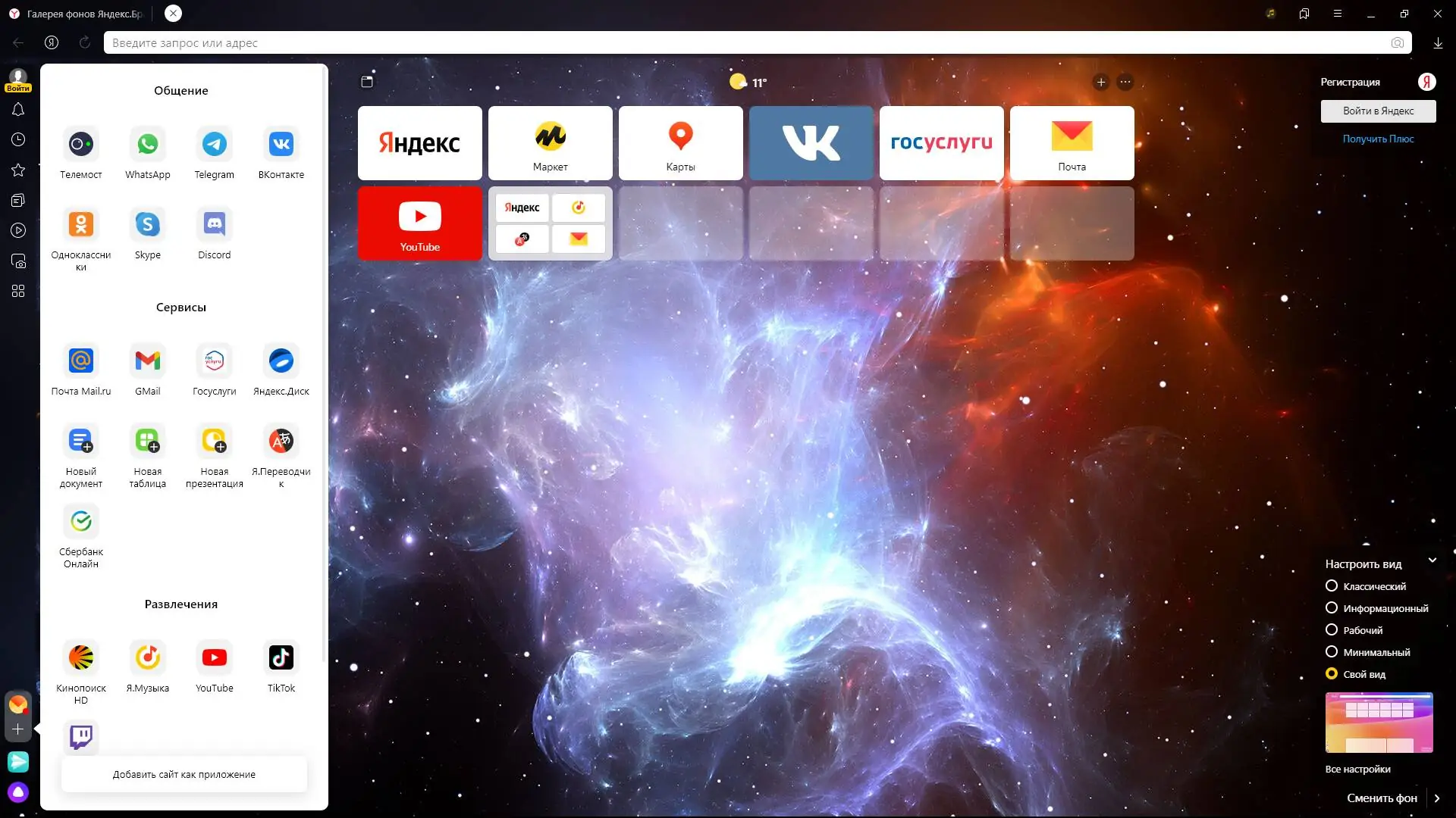 Фирменный браузер от компании Яндекс, созданный на базе Chromium. Обладает рядом полезных функций: ускоренная загрузка страниц при медленном соединении с Интернетом, быстрый доступ к наиболее часто посещаемым страницам, наличие умной поисковой строки, надежная защита от вирусов, интегрированный переводчик, перенос настроек и закладок из других браузеров. Благодаря обширному функционалу и простому управлению, он обеспечивает комфортное использование интернета как для новичков, так и для опытных пользователей.
