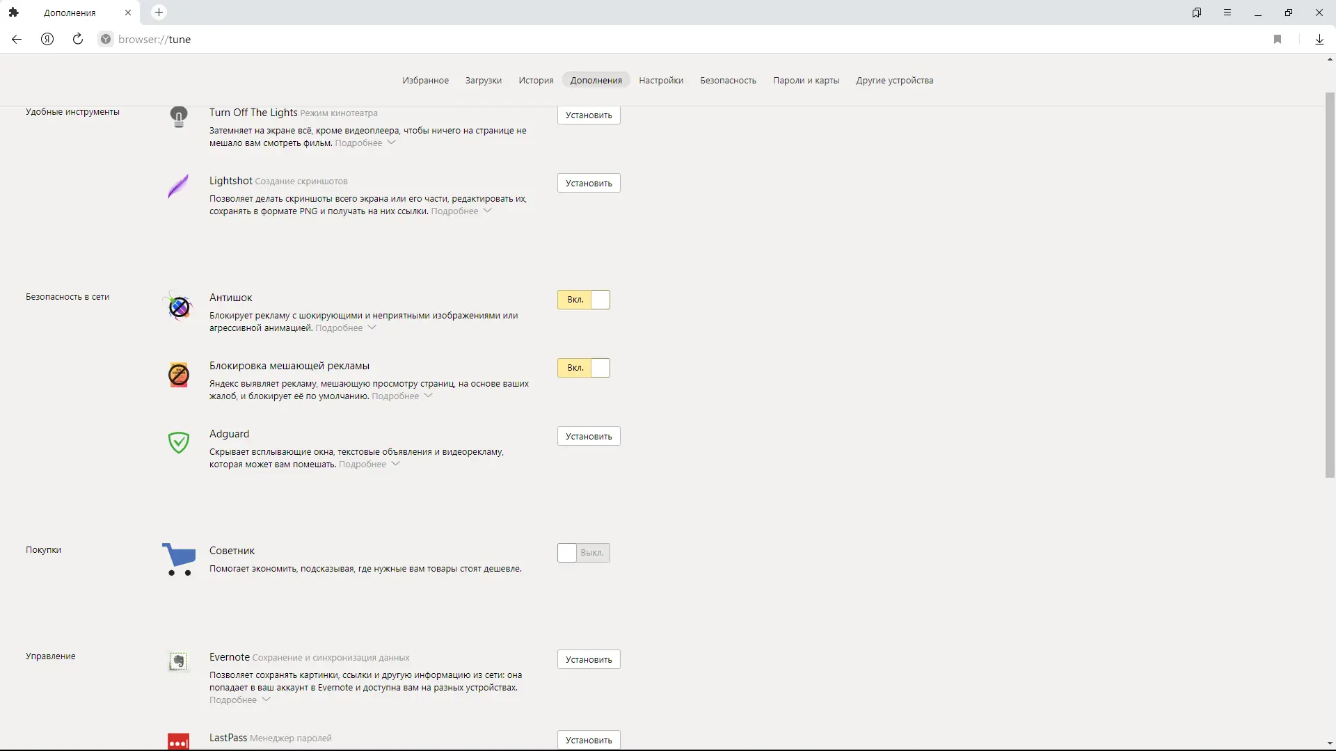- Блокировка трекеров для защиты от слежки и утечки личных данных.