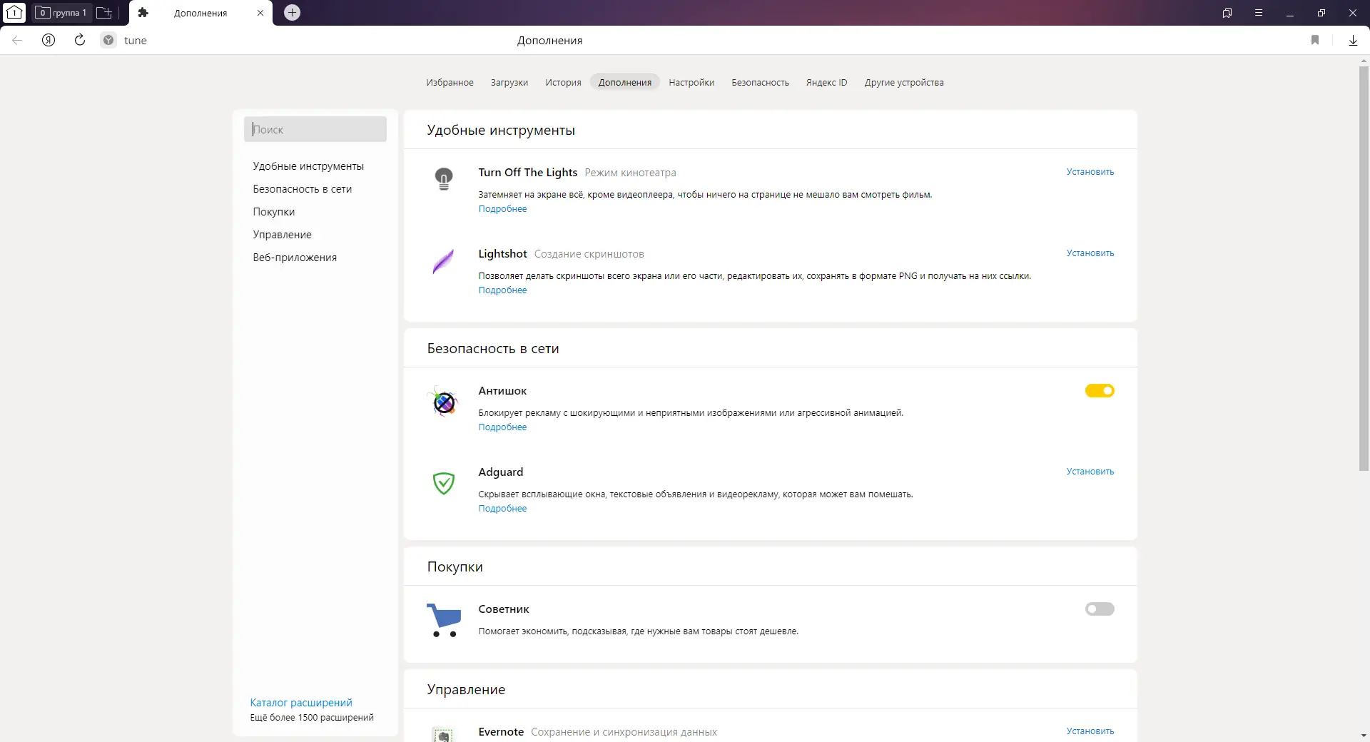 - Интеграция системы защиты от вирусов и трекеров с использованием технологий Лаборатории Касперского и YTP, блокировка нежелательных трекеров.