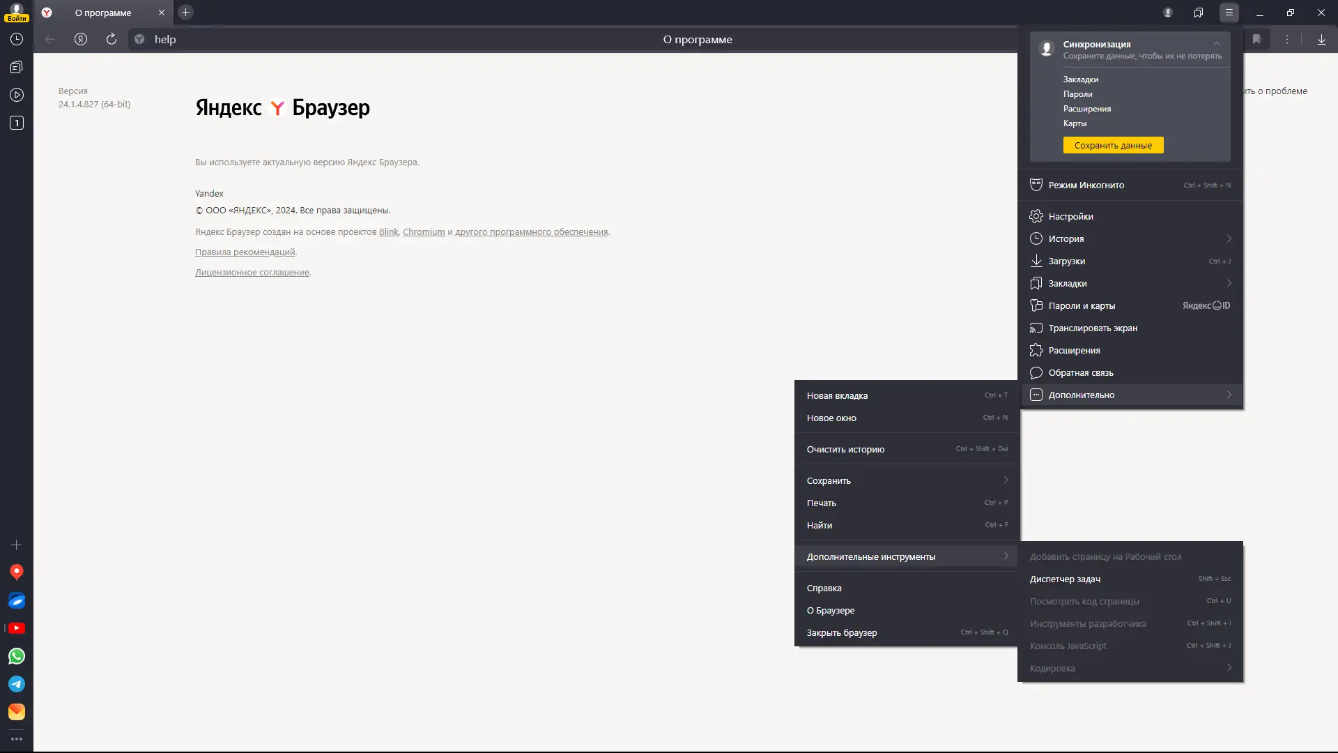 Фирменный браузер основан на движке Chromium, что обеспечивает высокую производительность и совместимость с современными веб-технологиями. Встроенные нейросети YandexGPT помогают улучшать тексты, переводить видео и картинки, а также быстро находить необходимую информацию. Браузер интегрирует множество инструментов для управления вкладками, работы с веб-приложениями и общения, что позволяет максимально эффективно использовать его возможности на разных устройствах и ОС.