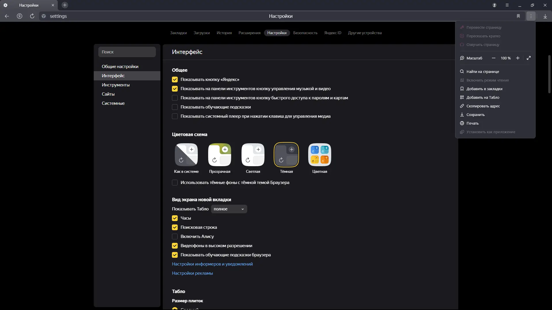 - Быстрый доступ к наиболее посещаемым сайтам через Табло.