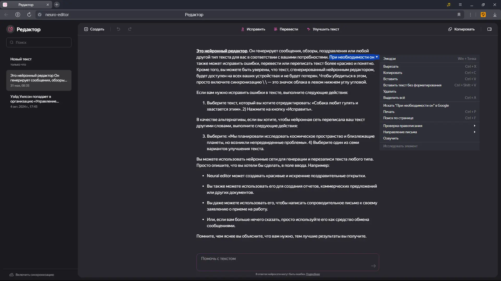 - Интеграция нейросетевых инструментов для перевода, генерации и анализа контента.