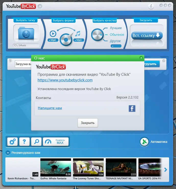 Вы хотите быстро сохранять видеоролики с YouTube и других сайтов прямо из браузера или через интерфейс программы? YouTube By Click — это мощный загрузчик, который позволяет легко и бесплатно скачать видео и аудио с множества популярных сервисов. Он поддерживает работу в различных браузерах, таких как Chrome, FireFox, IE и Edge, обеспечивая максимально комфортный процесс работы. Просто скопируйте URL нужного ролика, выберите папку и формат, затем нажмите «Вставить URL», и загрузка начнется автоматически. Программа также позволяет скачивать целые плейлисты, видео в высоком разрешении и конвертировать файлы в различные форматы для удобства воспроизведения на любых устройствах. Возможность скачивания защищенных приватностью видео в Instagram и одновременная загрузка нескольких файлов делают этот инструмент незаменимым для пользователей, стремящихся к максимальной эффективности.