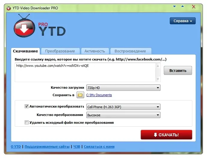Программа YouTube Video Downloader предназначена для быстрого и легкого скачивания видеофайлов с популярных интернет-ресурсов. Для загрузки необходимо просто вставить ссылку на интересующее видео, выбрать папку для сохранения и начать процесс. Помимо стандартного скачивания, она поддерживает конвертацию видео в разнообразные форматы, такие как MP3, MP4, AVI, 3GP и MPEG, что облегчает просмотр на различных мобильных устройствах — iPod, iPhone, PSP и iTunes. Также программа включает встроенный проигрыватель для воспроизведения загруженных роликов, что позволяет сразу просмотреть скачанный контент без сторонних проигрывателей.