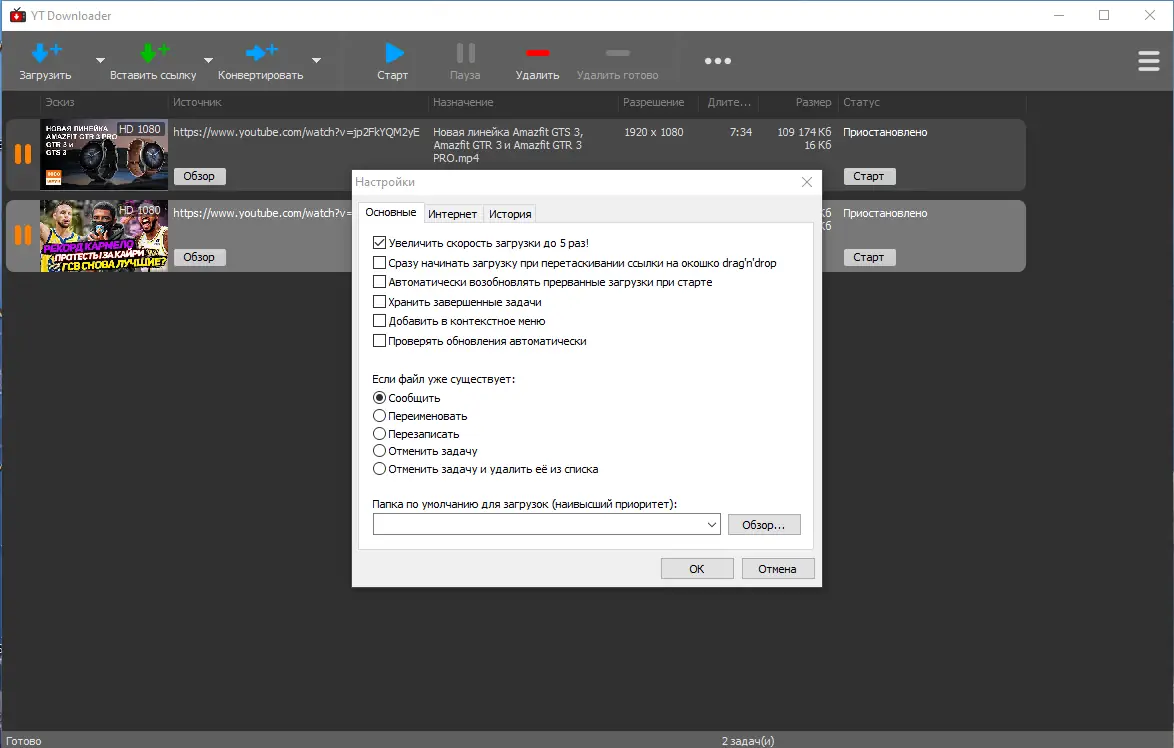 - Загрузка видео с YouTube, Facebook, Dailymotion, Vimeo и других сервисов