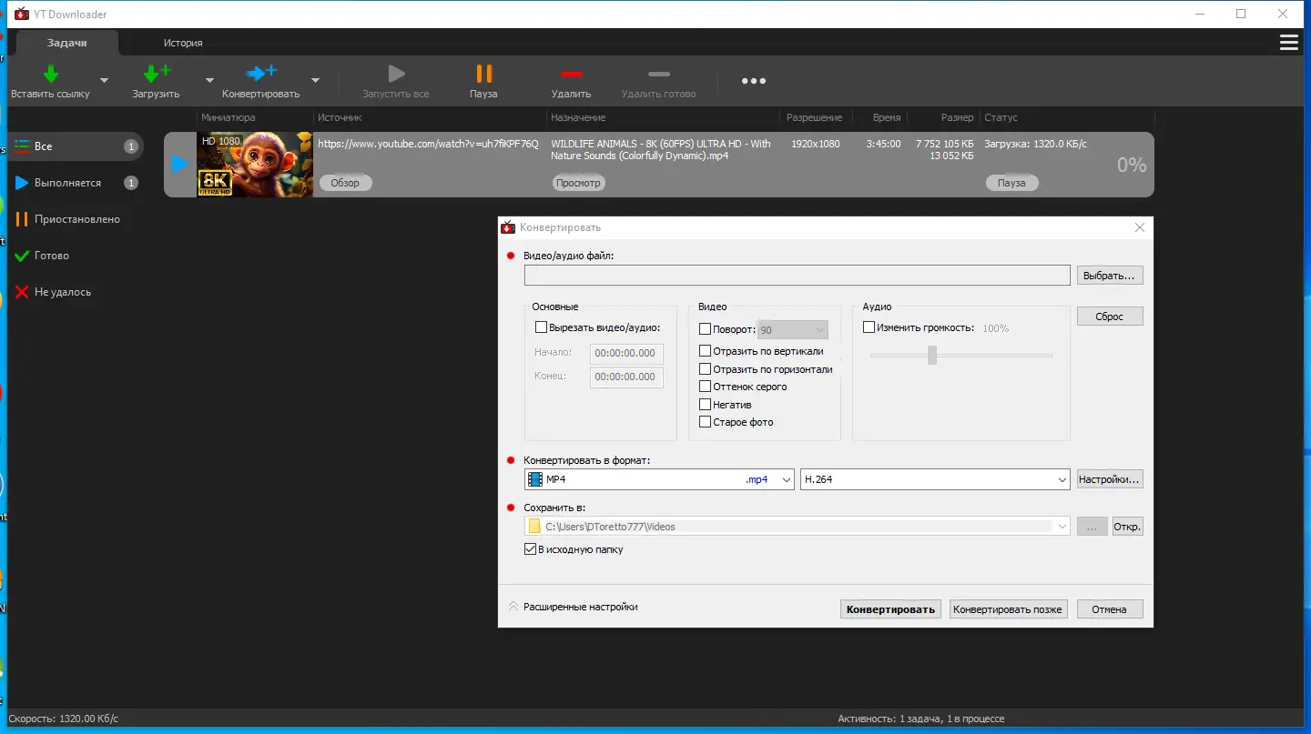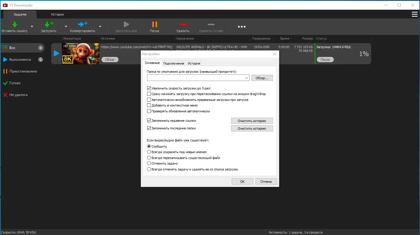 - Скачивание видео в 4K, HD, 3D и других форматах высокого разрешения.