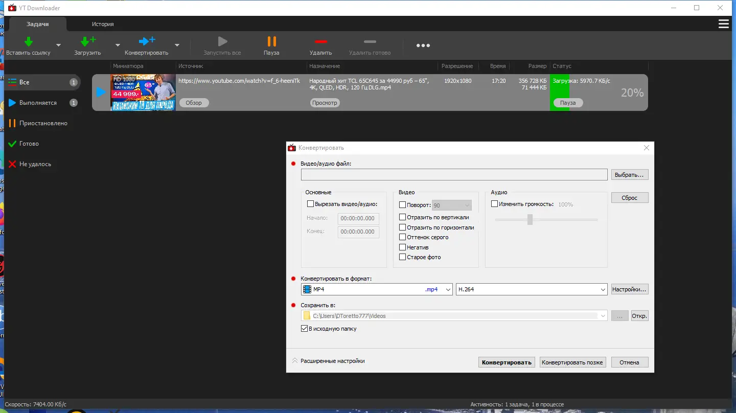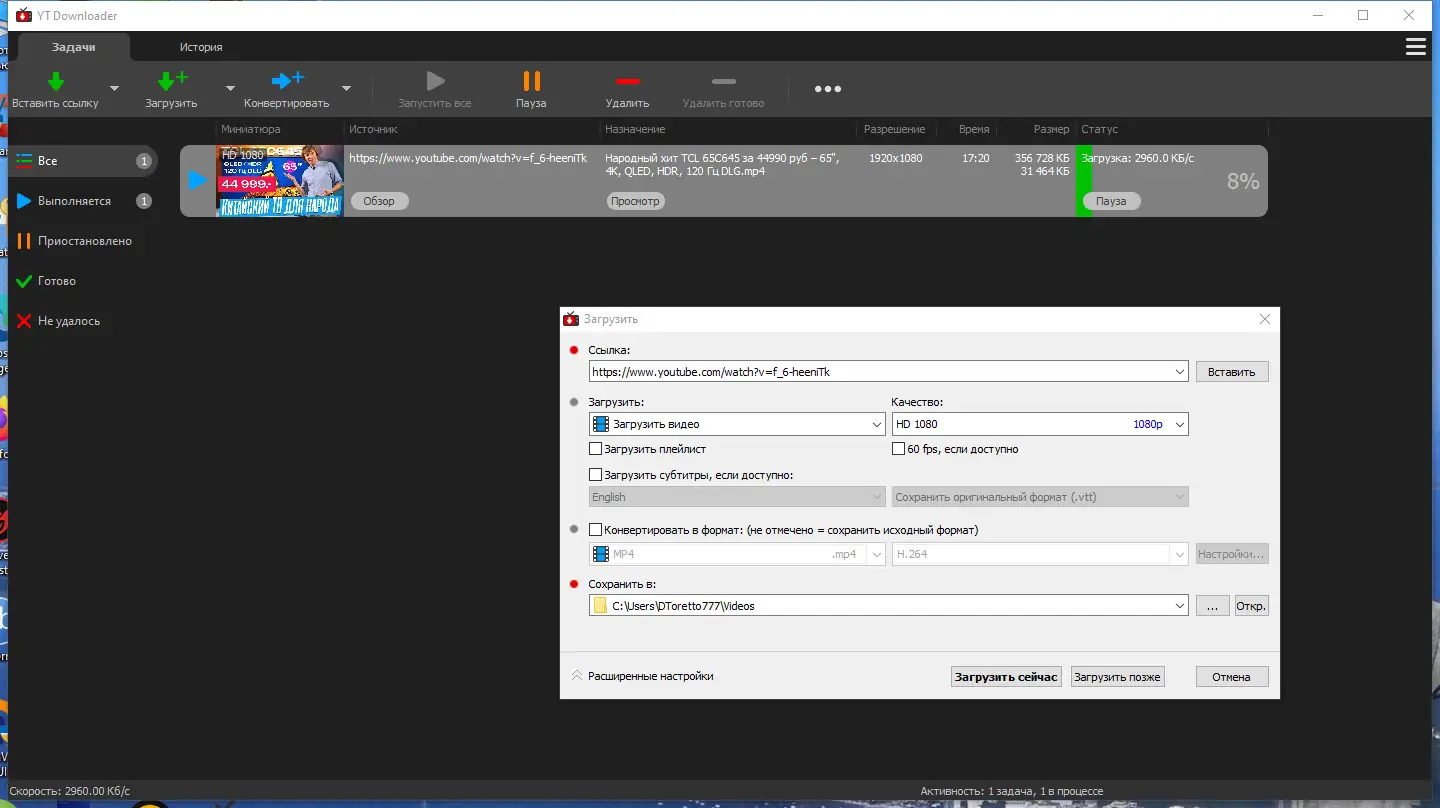 - Поддержка загрузки видео в 4K, HD 1080p и 720p, а также 3D-видео с YouTube