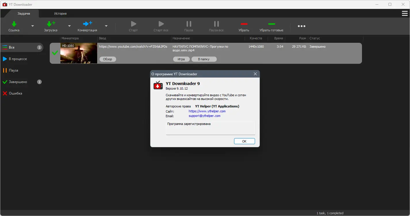 Обращаем внимание, что из-за ограничений работы YouTube в России с августа 2024 года рекомендуется использовать Proxy, VPN или GoodbyeDPI для успешного скачивания видеоконтента.