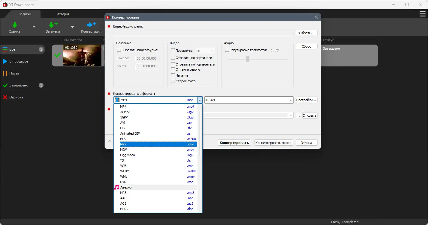 - Извлечение аудиодорожек в формат MP3 без скачивания полноценного видео