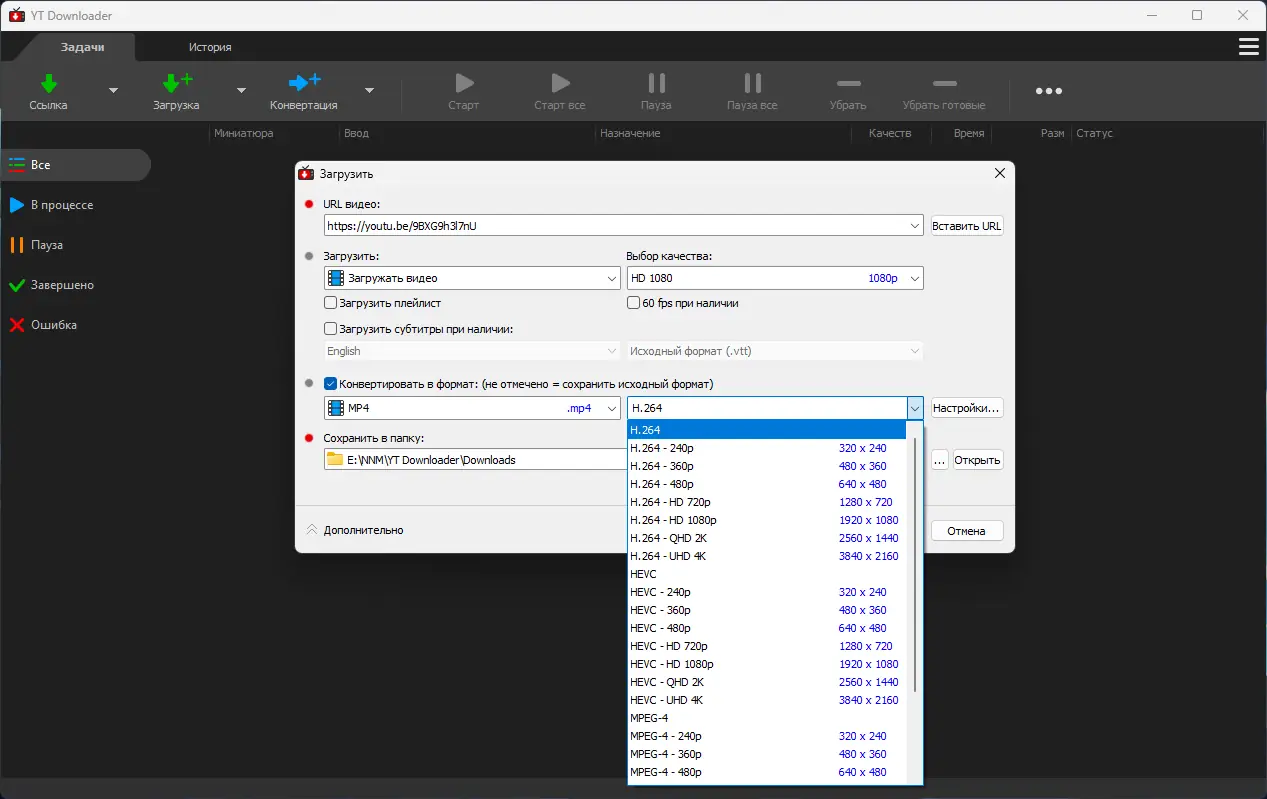 - Загрузка видео в высоком качестве: 4K, HD 1080p, 720p, 3D-видео
