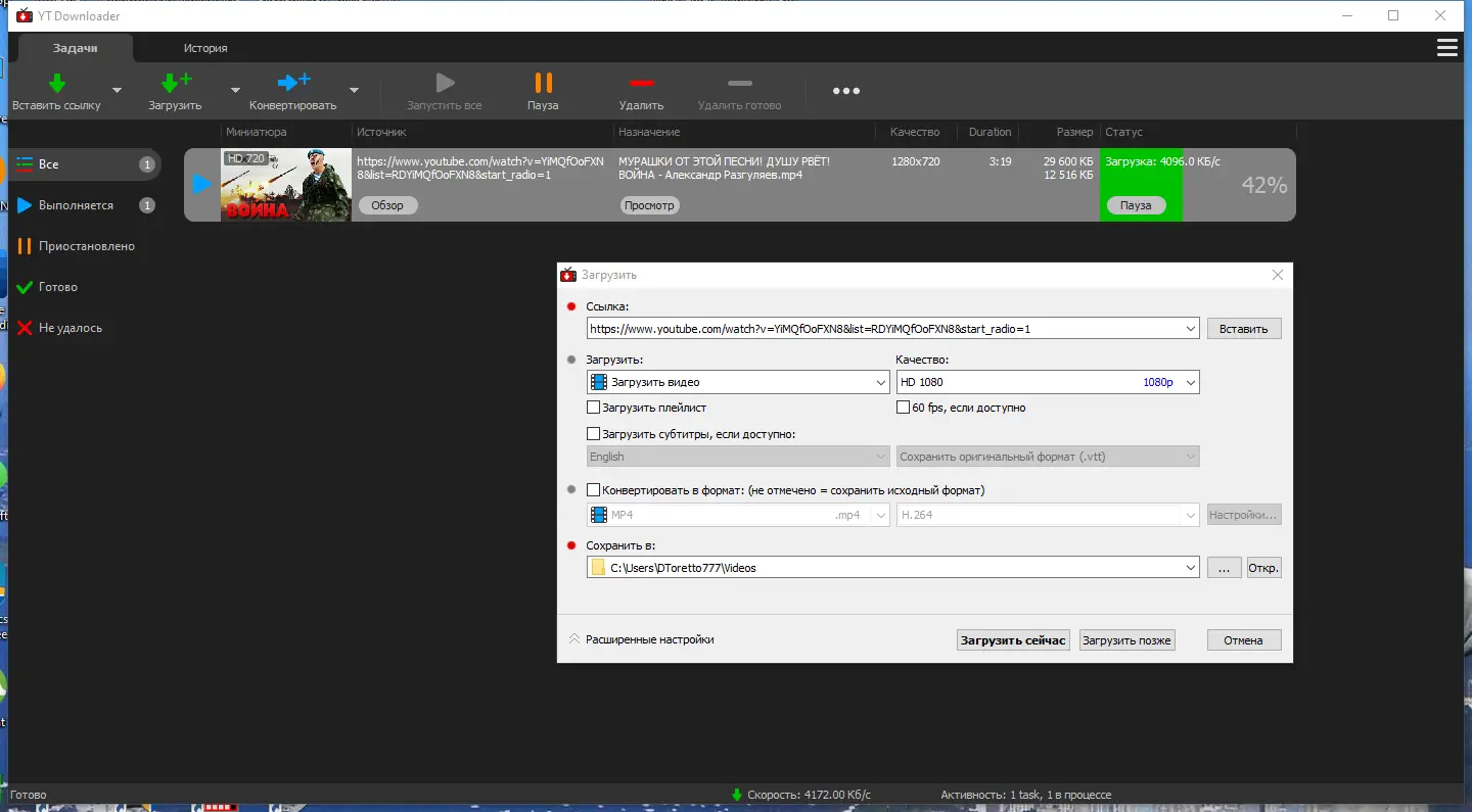 - Поддержка загрузки видео с сотен видеохостингов, включая YouTube, Facebook и многие другие