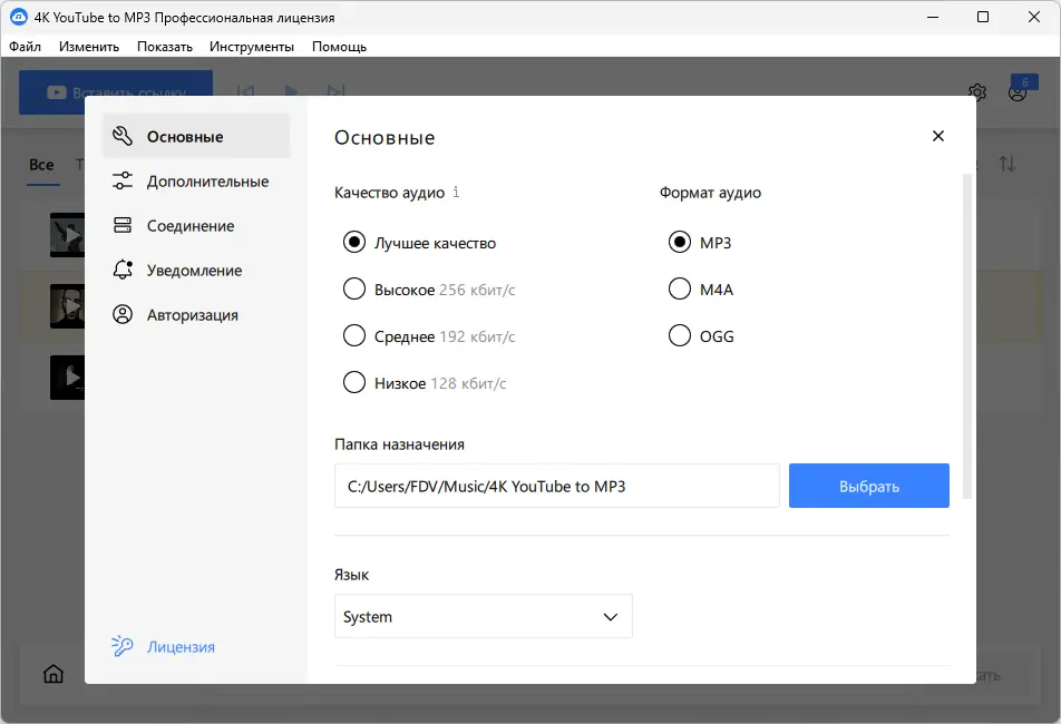 - Сохранение в MP3, M4A и OGG высокого качества