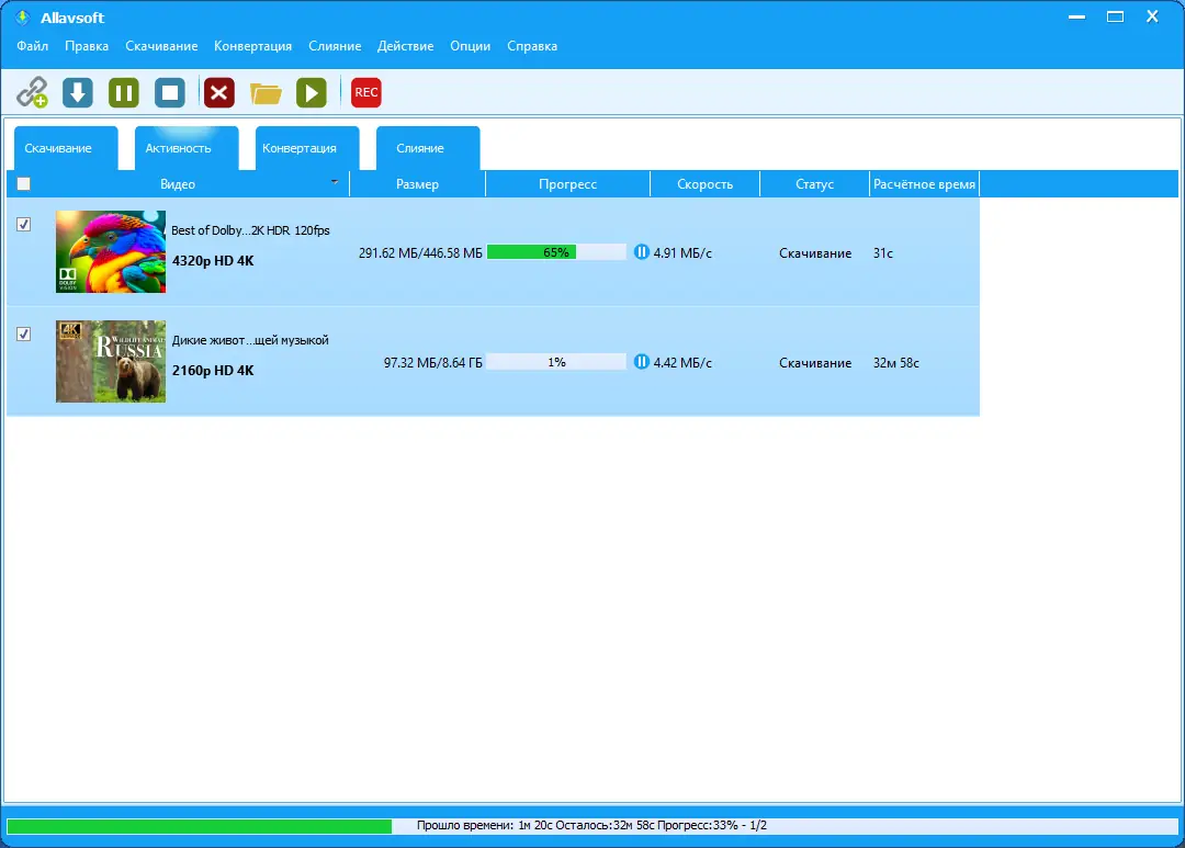 Allavsoft Video Downloader Converter — мощный инструмент для скачивания и преобразования видео и аудио файлов. Он поддерживает загрузку фильмов, музыкальных клипов, плейлистов и уроков в оригинальном качестве или в популярные форматы, такие как AVI, MP4, MOV, WebM и многие другие. Кроме того, программа позволяет извлечь звуковую дорожку из онлайн видео и конвертировать её в форматы MP3, WMA, WAV, AAC и другие. Интуитивный интерфейс, возможность выбора разрешения до 4K, HD и других, а также пакетная загрузка делают работу с видео максимально удобной и быстрой.