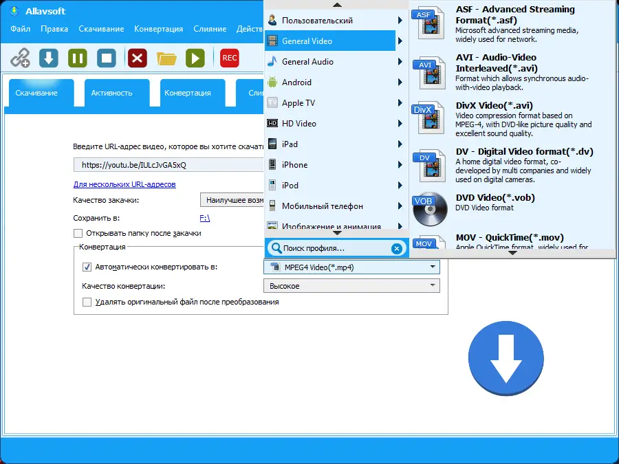 Allavsoft — это универсальный видеод downloader и конвертер, позволяющий легко скачивать видео и аудио с более чем 100 популярных видеохостинговых сайтов, а также осуществлять их быструю конвертацию в разнообразные форматы без потери качества.