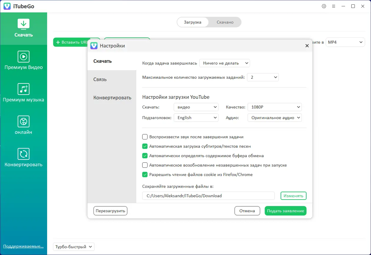 - Многозадачность и возможность скачивания целых плейлистов и каналов одним щелчком.