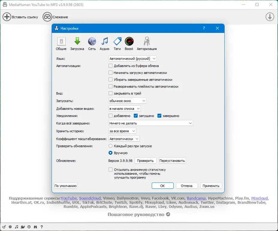 - Из-за ограничений работы YouTube в России возможны сбои или невозможность скачивания с этого сервиса.