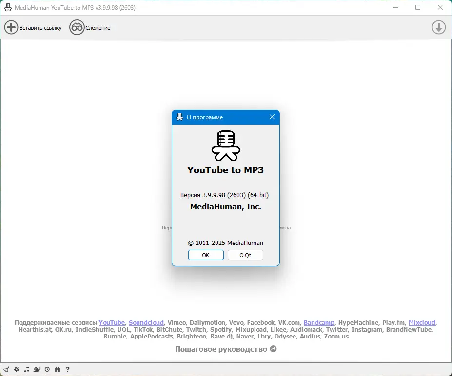 MediaHuman YouTube to MP3 Converter — это удобное решение для скачивания аудиофайлов с популярных платформ, таких как YouTube, Vimeo, Dailymotion и Soundcloud. Он позволяет сохранять музыку в высоком качестве без необходимости иметь постоянное интернет-подключение, что особенно удобно для прослушивания в дороге или в ситуациях с ограниченной связью. Программа идеально подходит для тех, кто хочет быстро и легко получить саундтреки с видеороликов или загрузить любимую музыку в удобном формате для прослушивания в любое время.