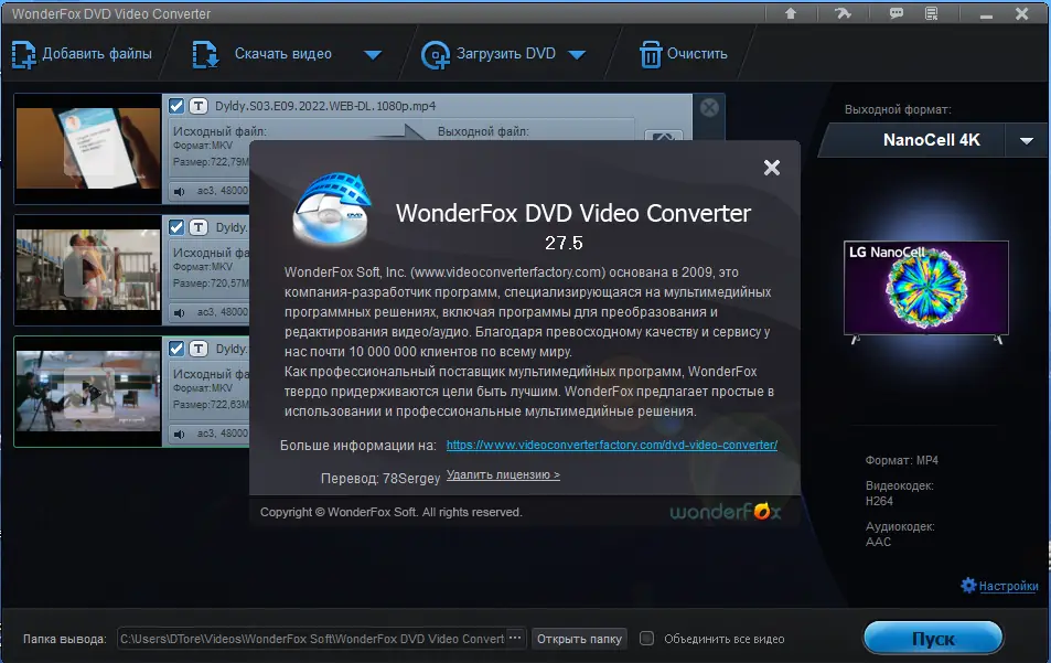 WonderFox DVD Video Converter позволяет легко создавать резервные копии зашифрованных DVD-дисков, а также загружать видео из интернета и преобразовывать их в более удобные форматы. Интегрированный редактор предоставляет возможности добавления эффектов, объединения, обрезки, вращения и регулировки громкости видеоматериалов. Программа поддерживает более 300 форматов и устройств, включая мобильные гаджеты и игровые консоли, такие как iPad, iPhone, Samsung, Nexus, XBox и многие другие. Поддержка пакетной обработки и автоматический подбор оптимальных настроек позволяют значительно ускорить рабочий процесс.