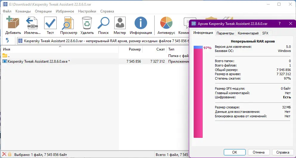 Обратите внимание, что программа упакована в архив и может быть заблокирована антивирусом — в таком случае добавьте её в исключения.