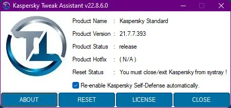 Касперский Tweak Assistant — небольшая утилита, которая после сканирования системы обнаружит устаревшие или активированные версии антивирусных продуктов компании «Касперский», затем выполнит сброс тестового периода. Это даёт возможность снова использовать защитные программы без приобретения лицензии на определённый срок, что делает использование актуальным для пользователей, ищущих бесплатный способ продлить пробный период.