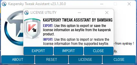 Kaspersky Tweak Assistant — небольшая программа, которая позволит сбросить триальный период продуктов от компании «Касперский». После запуска она сканирует систему, обнаруживает установленный софт от этой компании и позволяет сбросить его триальную лицензию. В результате вы вновь можете пользоваться продуктом в течение 30 дней без оплаты. Программа упакована в архивы, имеет защиту от автоматического удаления антивирусом, что обеспечивает её безопасность и надежность.