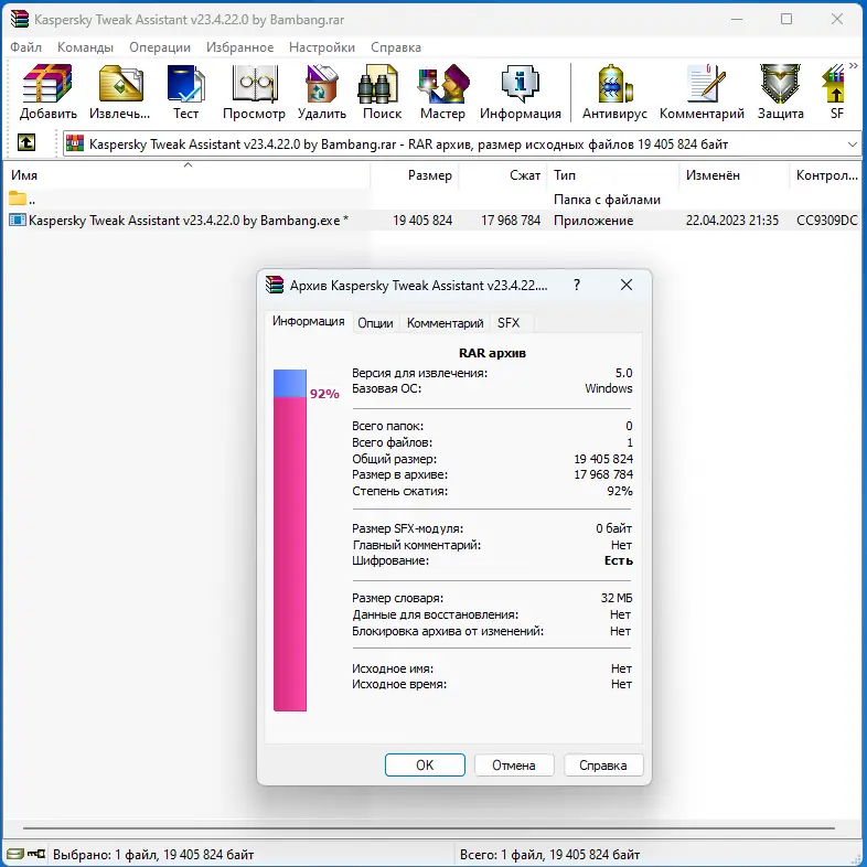 - Распакуйте архив с инструментом, введите пароль: NNM-Club, и запустите Kaspersky Tweak Assistant от имени администратора.