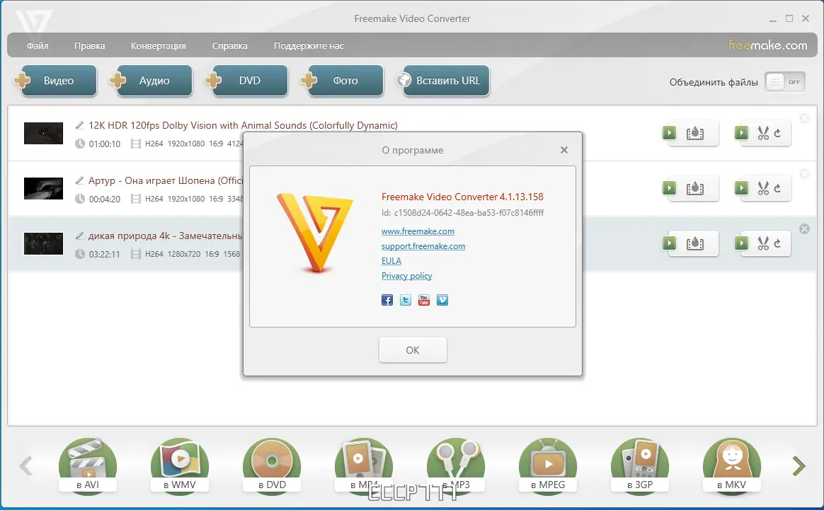 - Конвертация видео в более чем 500 форматов, включая MP4, AVI, MKV, MOV, FLV, MP3 и другие, с поддержкой современных кодеков.