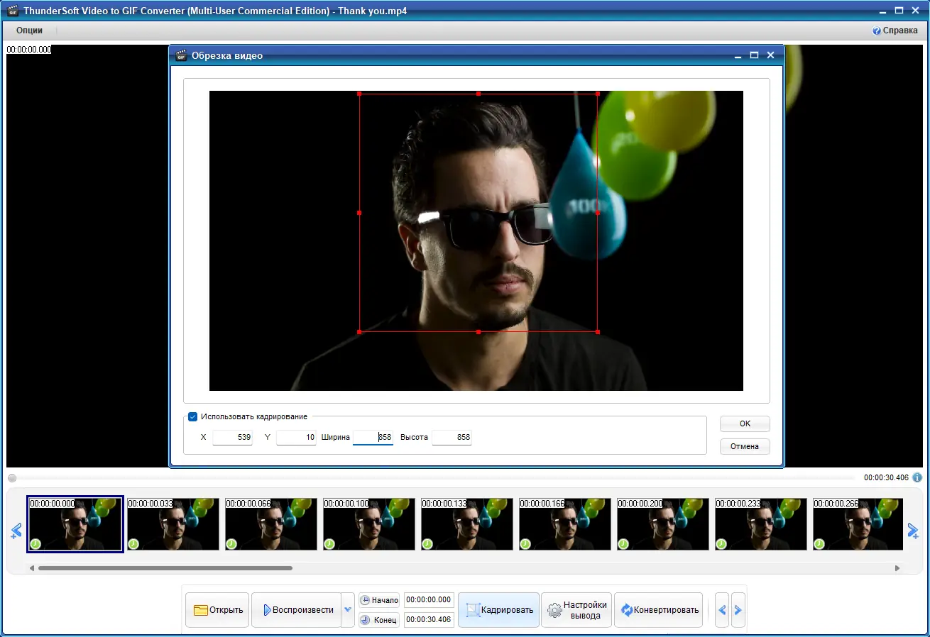 - Предварительный просмотр видео и выходных GIF изображений кадр за кадром