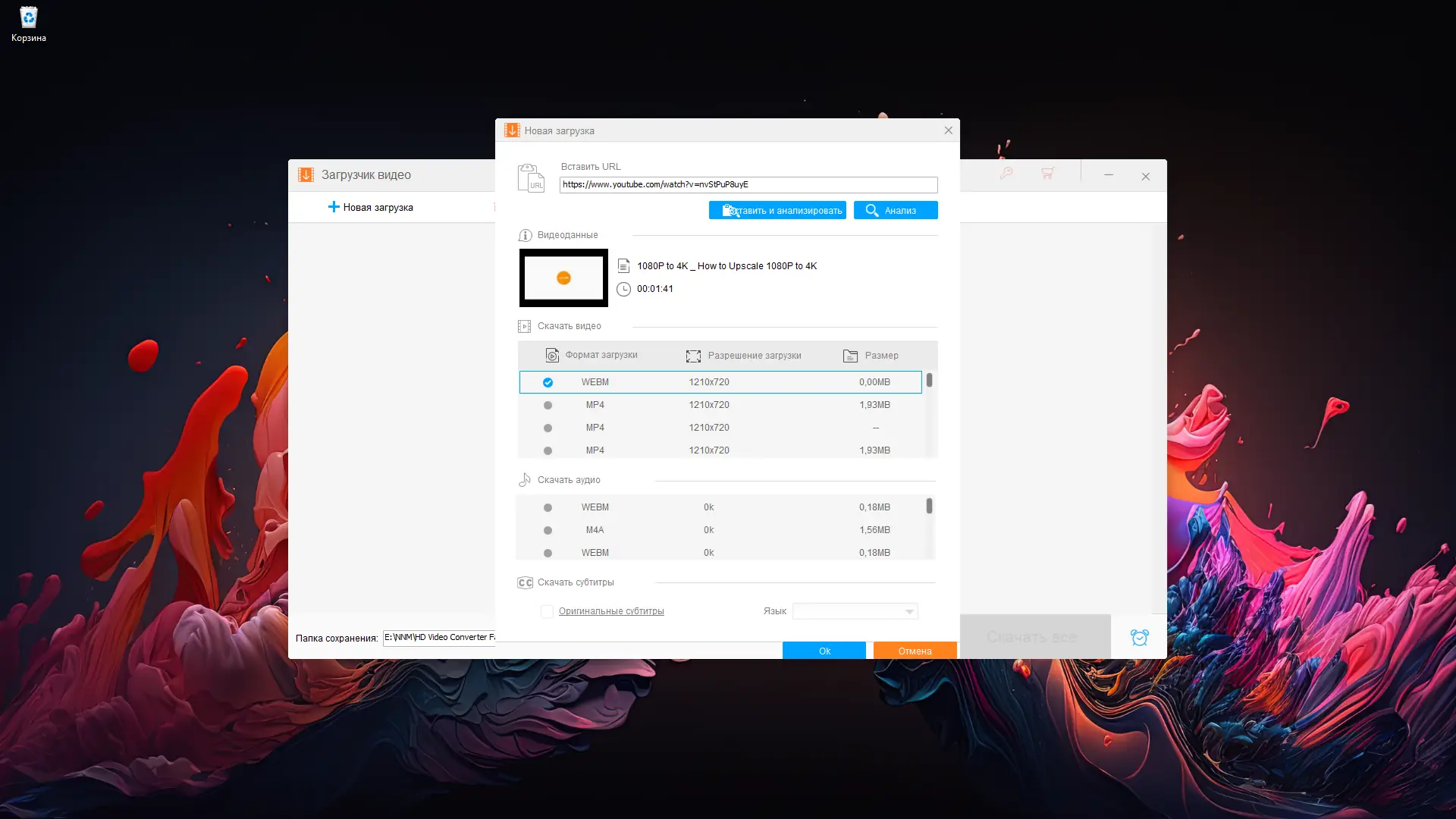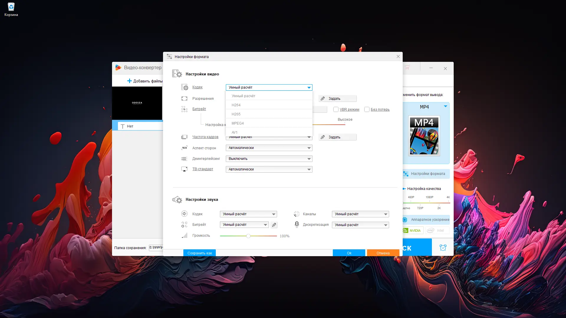 - Поддержка передовых кодеков H265 (HEVC) и VP9 для оптимизации размера с сохранением качества