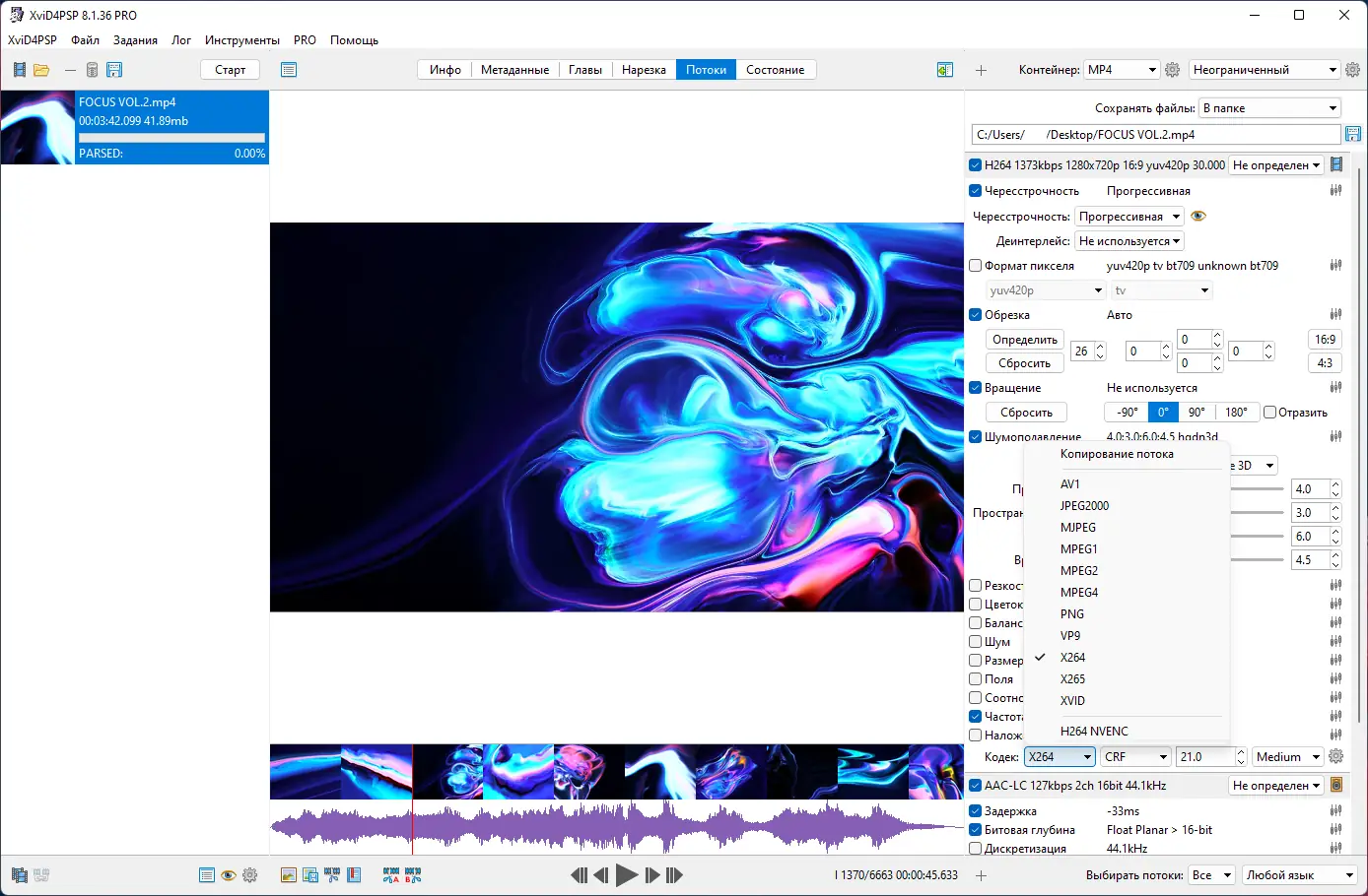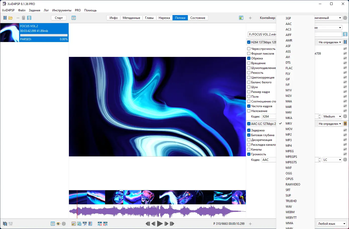 - Поддержка более сотни медиаформатов при импорте и экспорте, включая редкие и профессиональные стандарты.