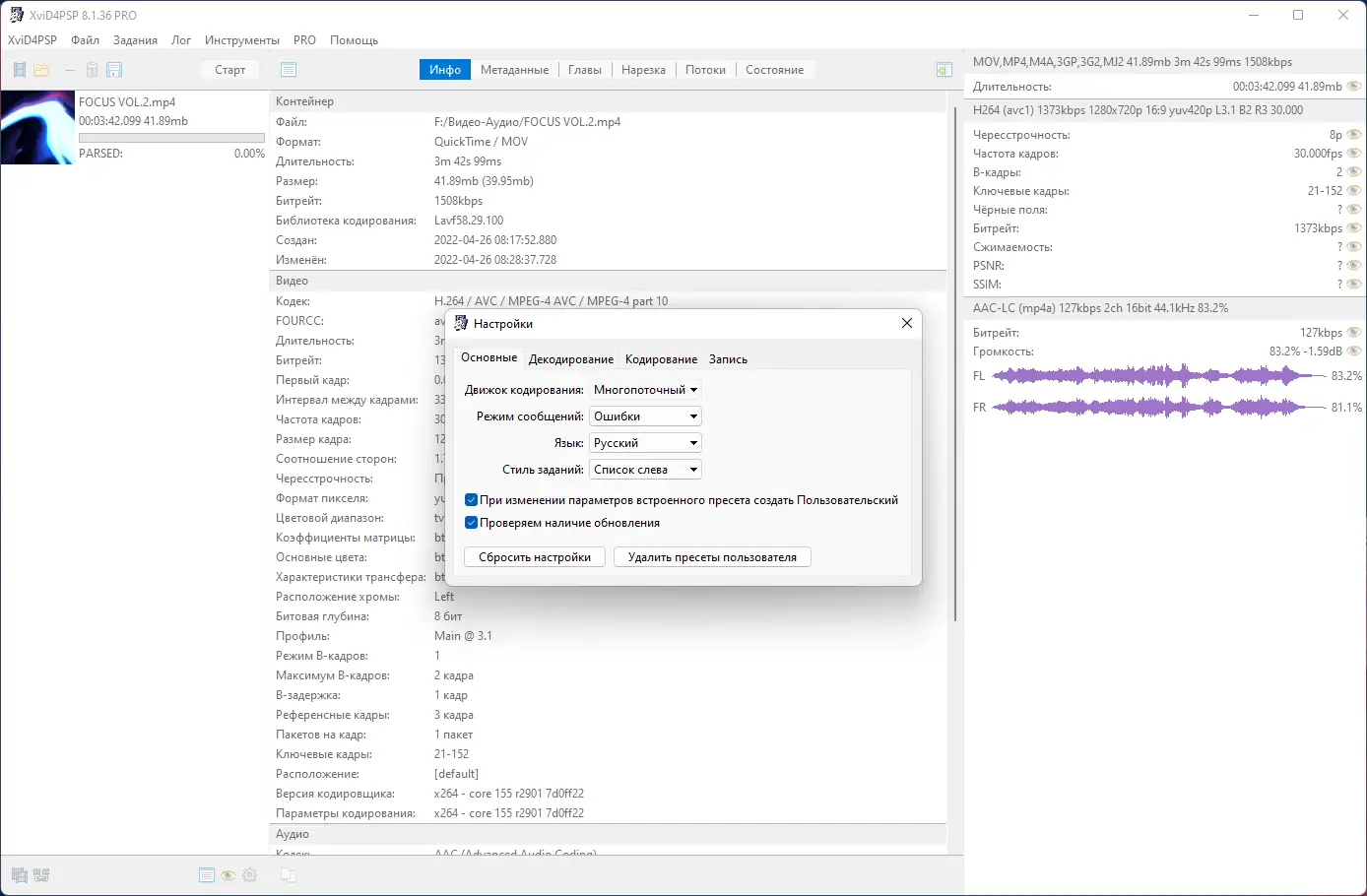 XviD4PSP — универсальный конвертер, который позволяет работать практически со всеми популярными медиа форматами, включая AVI, DIVX, ASF, MPG, MKV, MOV, FLV и многие другие. Программа не зависит от дополнительных системных компонентов и установленных кодеков, что значительно упрощает процесс установки и использования. Благодаря наличию пресетов для различных мобильных устройств, таких как PSP, iPod, iPhone или современные игровые приставки, вы можете быстро подготовить видео для просмотра на нужном оборудовании либо выкладывать его на порталы. Также поддерживаются разнообразные экспортные форматы, что делает программу незаменимой в арсенале каждого, кто занимается видео/аудиоконвертацией.