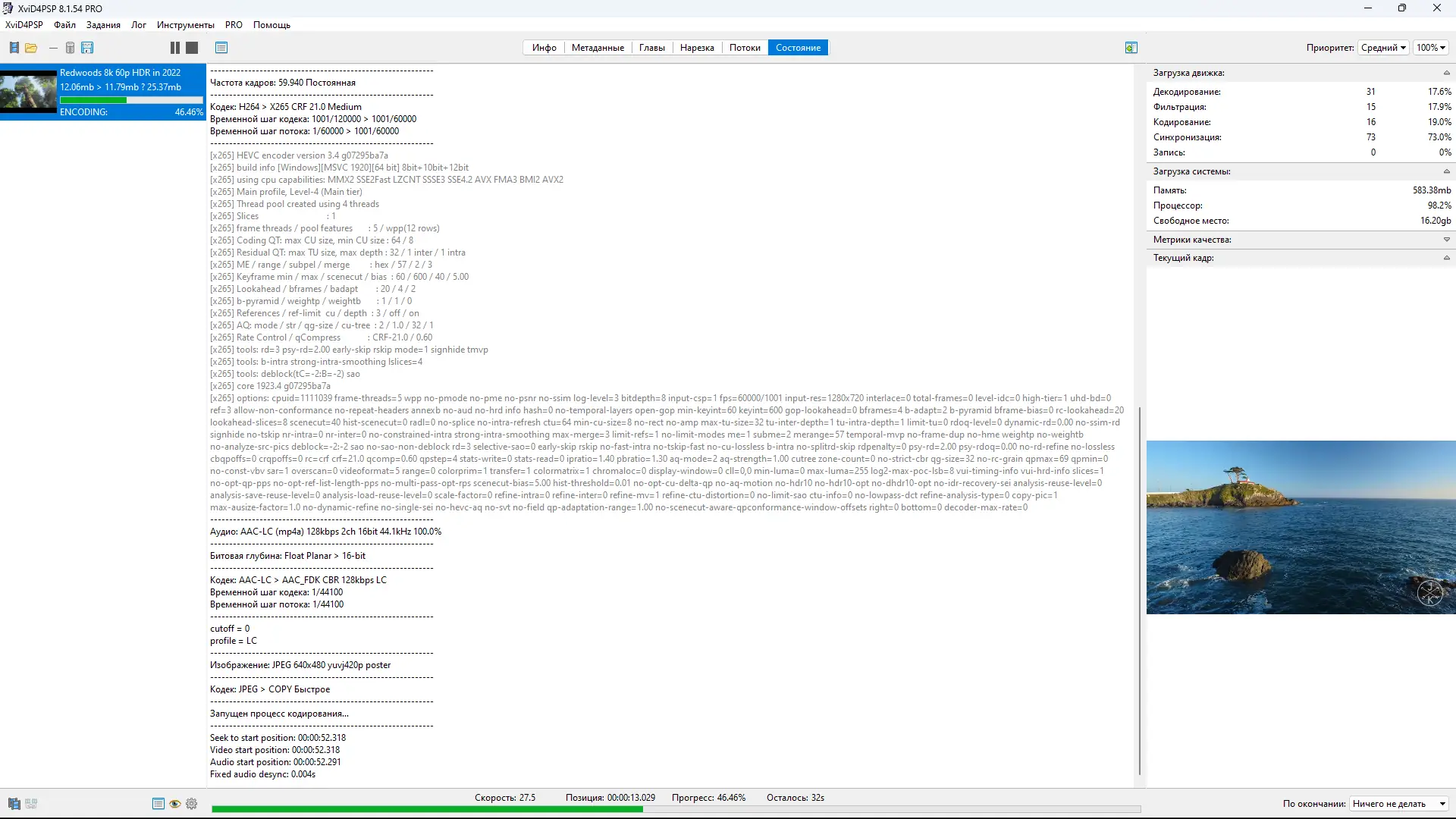 - Поддержка HDR, VFR, VDMX, VapourSynth и VFW/ACM декодеров для расширенной обработки видео.