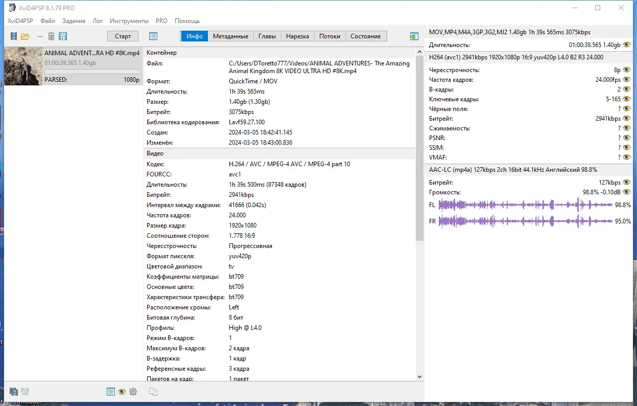 - Гибкое редактирование метаданных, управление потоками, настройка деинтерлейсинга и фильтров частоты кадров.